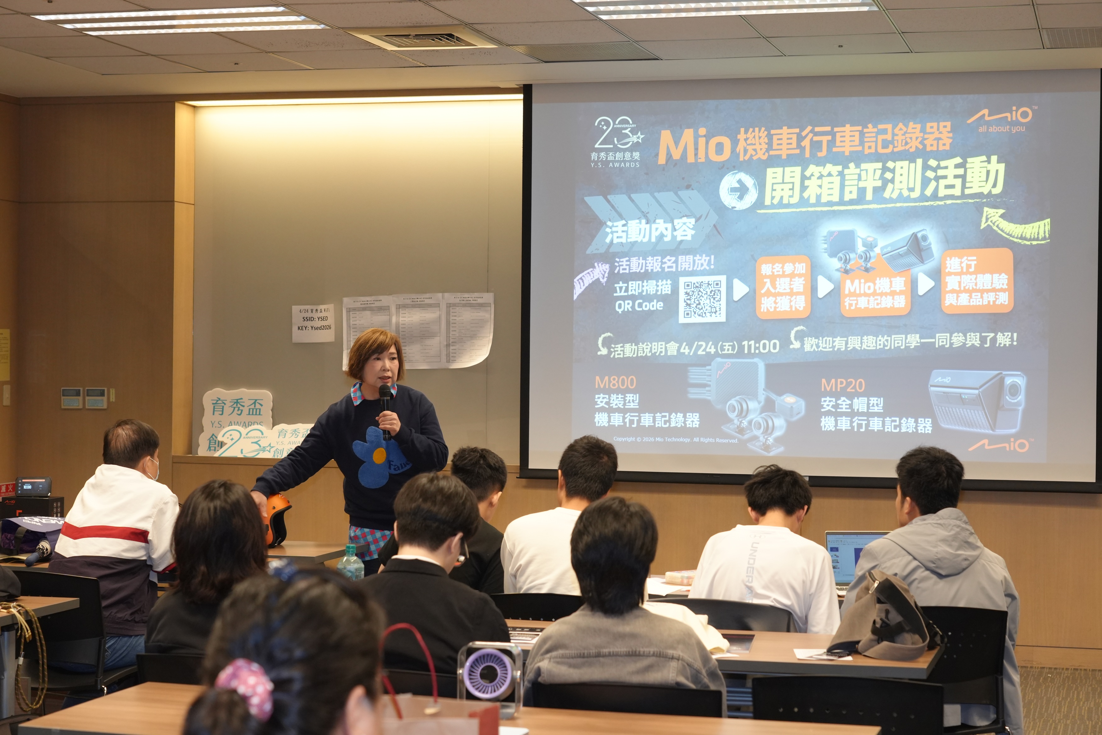 本屆決選邀請產官學界共十八位專家擔任評審,從技術、設計、敘事與市場應用等面向進行綜合評比。活動現場除安排台灣設計研究院分享「AI設計研究工具」,也結合集團品牌交流與人才招募;集團旗下神達數位Mio 亦帶來最新款機車用行車記錄器評測體驗,與學生及年輕族群互動交流。